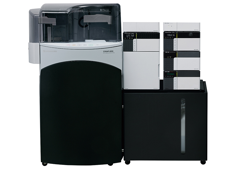 The C2MAP™ System can be automated the process from pretreatment to measurement for culture supernatant samples and display temporal changes in the components as graphs. With the optimized LC/MS/MS simultaneous analysis method, the system can be used for the optimization of culture conditions in animal cell cultures by monitoring the consumption and depletion of media components during culturing, as well as the variation in metabolites secreted from cells.
